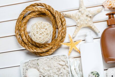 spa kit on wooden background