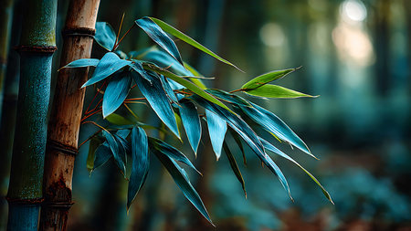 A serene image of bamboo leaves dancing gently in the wind showcasing nature's beauty.