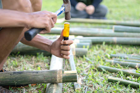 Senior man and bamboo craft, lifestyle of the locals in thailand