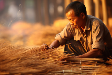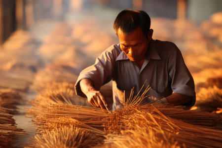 Traditional artisanal work. male worker in incense sticks. AI Generated