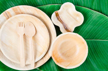 Kitchenware made from dried betel nut leaf palm, natural material. The Green product eco friendly concept.