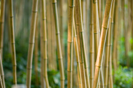 Close up of yellow bamboo stems in the tropical forest, Thailand.
