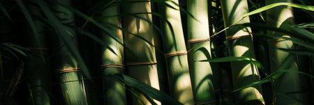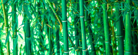 Bamboo forest background with copy space. Green banner for natural and eco concepts