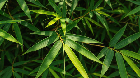Bamboo Background - Lush Foliage With Nature pattern view of bamboo leaf on greenery background. The green bamboo leaves have space for text or backgrounds.