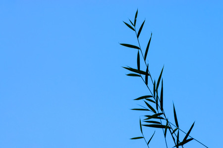 Silhouette bamboo leaves with space on blue sky background.