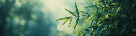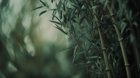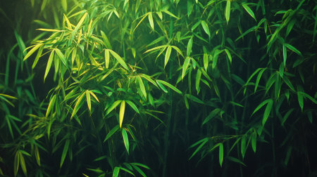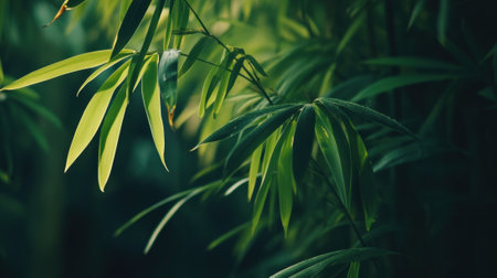 Captivating scene featuring lush green bamboo leaves bathed in soft, ethereal light, creating a serene atmosphere perfect for nature-themed projects.