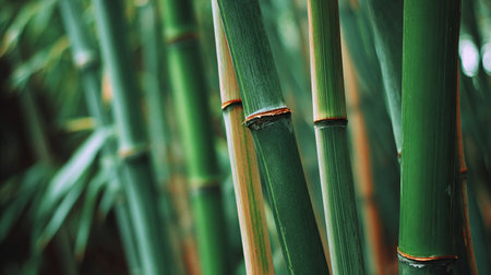 Green bamboo growing abundantly in a calm, natural environment, symbolizing relaxation, sustainability, and zen, with lush leaves creating a serene, peaceful background