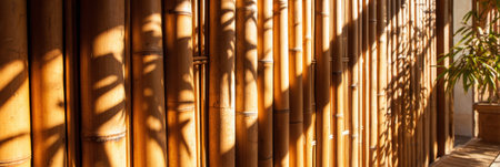 A captivating view of bamboo pipes illuminated by soft sunlight, creating an inviting and serene atmosphere perfect for interior decor or relaxation spaces.