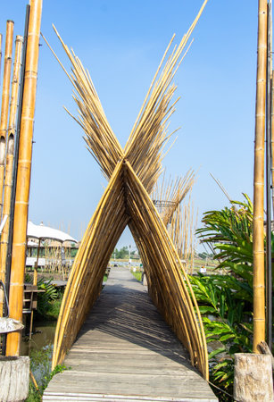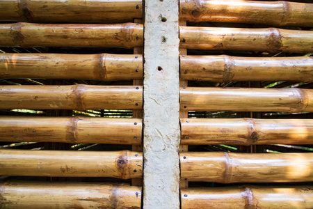 Old brown tone bamboo simple floor or Bamboo texture background for interior or exterior design vintage tone. Brown bamboo stick pattern backdrop. The walkway is made of bamboo bundles.
