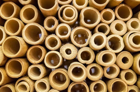 Close image of a slice of dry yellow bamboo, natural texture, wallpaper.