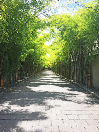 The walkway between bamboo forest in Chiayi, Taiwan.