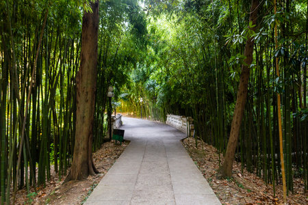 Path among bamboo forest on Tiger Hill (Huqiu) in Suzhou, Jiangsu, China