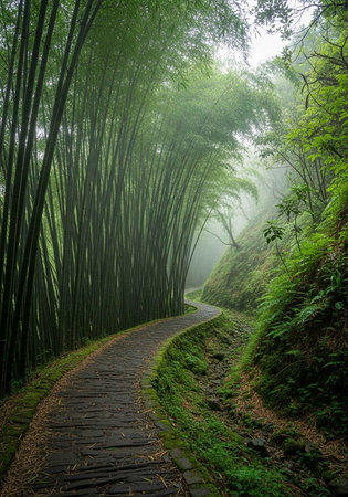 Winding Trails in Serene Bamboo Forests Evoking Quiet Reflection and Natural Calm