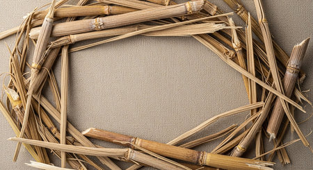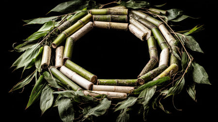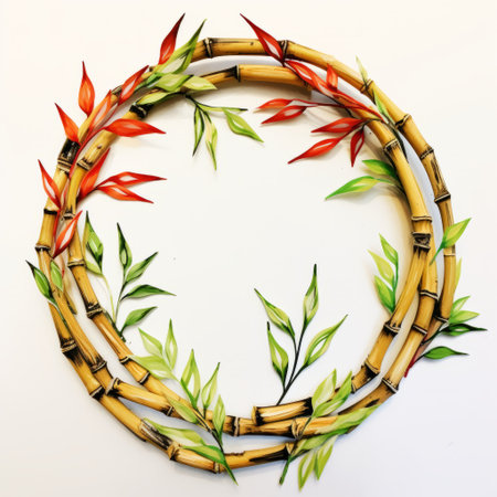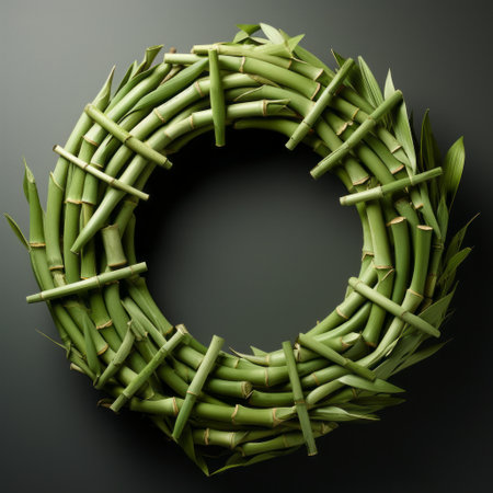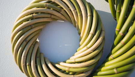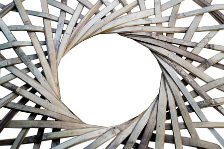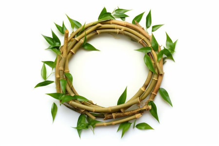 Weaved circular frame made from bamboo tree. Isolated in White background with copy space.
