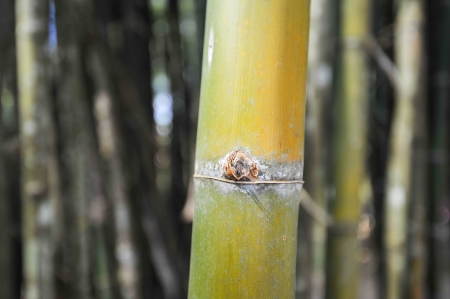 Close up of yellow bamboo stems in the tropical forest, Thailand.