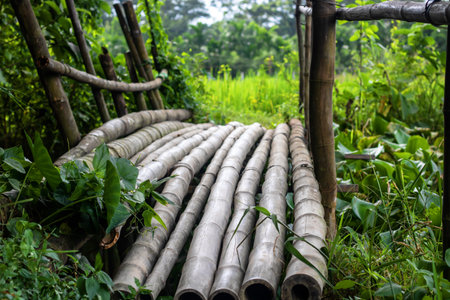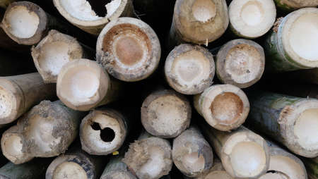 Piles of young and small pieces of bamboo that will be processed into bamboo handicraft products in the cottage industry becomes an attractive background