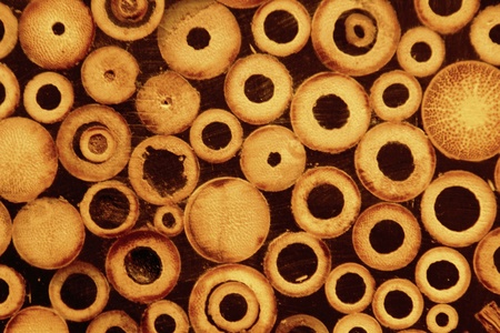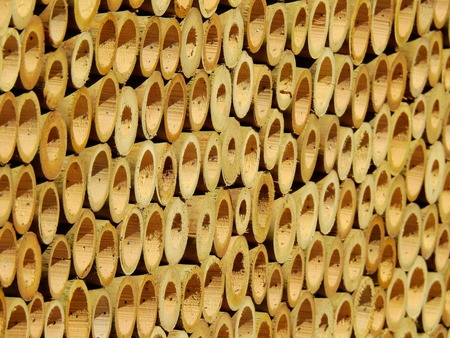 Close image of a slice of dry yellow bamboo, natural texture, wallpaper.