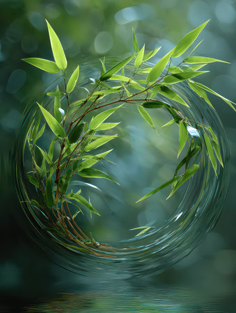Sunlight filters through a lush bamboo forest, illuminating the delicate leaves. The scene reflects tranquility and a deep connection to nature, inviting peaceful contemplation.