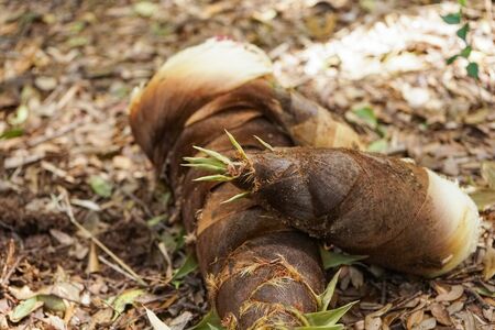 Tokyo, Japan - May 2, 2022: Bamboo shoot in bamboo forest in spring in Tokyo, Japan