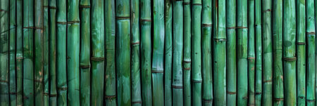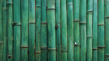 Bamboo fence collage texture in rich green tones, ideal for backdrop designs, banner use, or 3D mapping with a nature-inspired aesthetic.