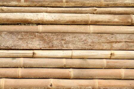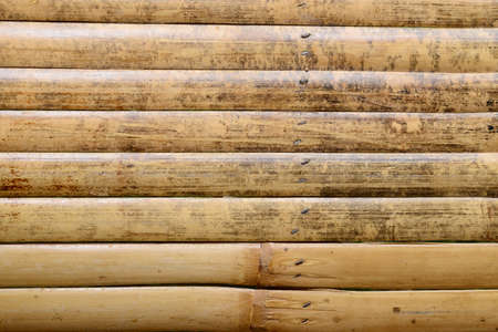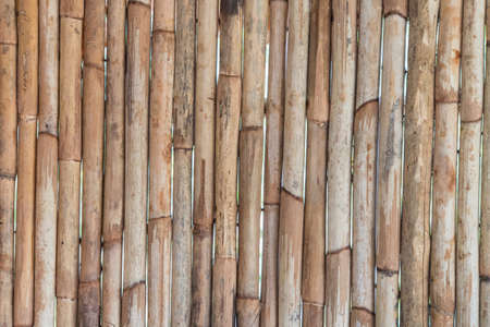 Background and texture. Bamboo sticks arranged vertically to create a wall of a house.