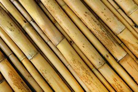 texture of a wall of yellow bamboo. close up. A wall of bamboo stalks yellow varnished.