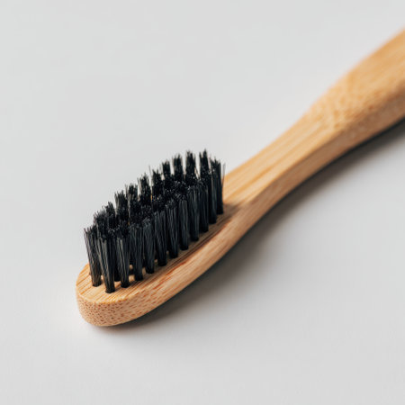 Toothbrush made from bamboo wood with dark bristles
