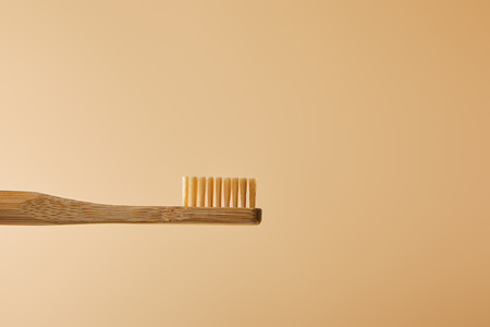 bamboo brown toothbrush on beige background