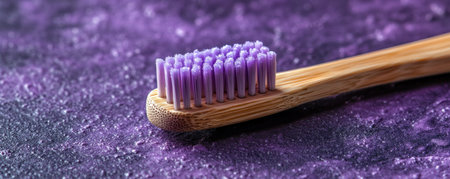 This vibrant image champions plastic-free oral care, showcasing a bamboo toothbrush and eco toothpaste tablets on a violet backdrop It embodies a zero-waste lifestyle, urging viewers to embrace eco-friendly dental hygiene The photo promotes responsible consumer choices for a greener future Reduce plastic consumption with sustainable alternatives, supporting a healthier AI Generative