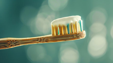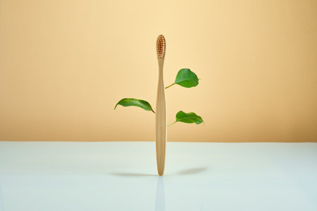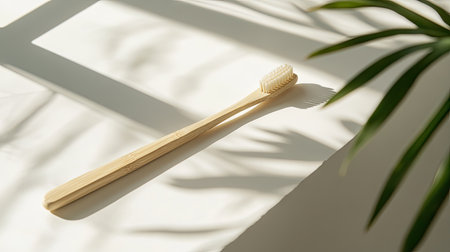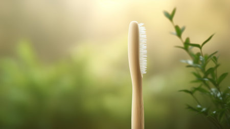 A serene image showcasing a bamboo toothbrush resting against a soft backdrop, exemplifying eco-friendly beauty and conscientious personal care routines.