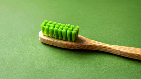 Eco-friendly bamboo toothbrush with green bristles on white