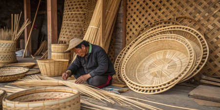 Close-up of woven bamboo matting, highlighting traditional crafting techniques and natural materials