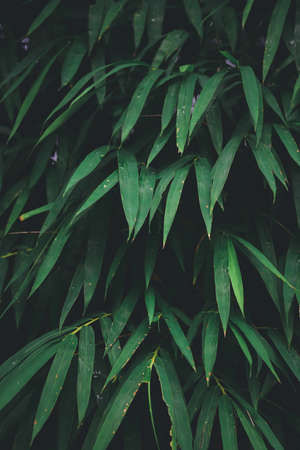 Very green fresh natural bamboo leaves background in lush tropical forest - Good environmental and pure nature