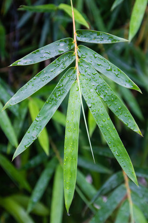 Bamboo Background - Lush Foliage With Nature pattern view of bamboo leaf on greenery background. The green bamboo leaves have space for text or backgrounds.