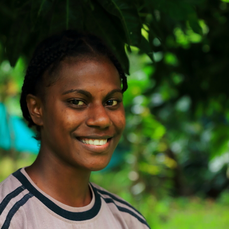 EPI,VANUATU-OCTOBER 4, 2014: Pretty girl poses for the photographer at the entrance to your home on October 4, in Lamen Bay-Vanuatu.