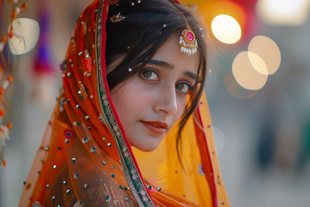 Generative AI Image of Beautiful Indian Girl Wearing Traditional Clothes Veil