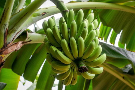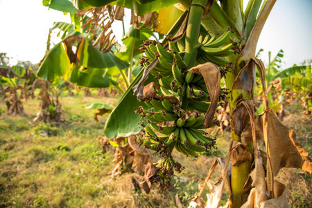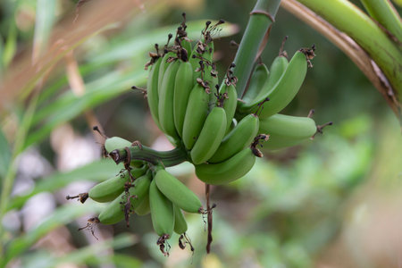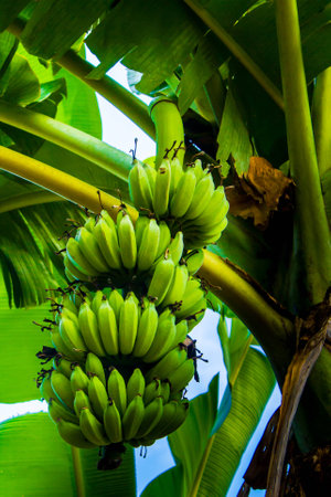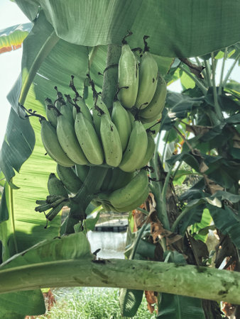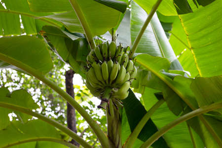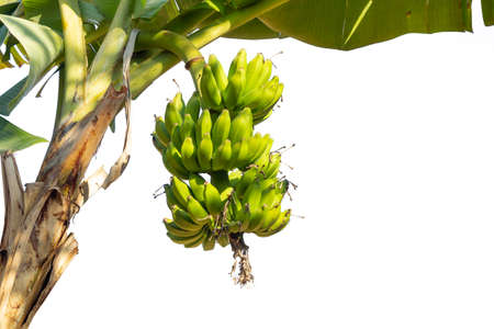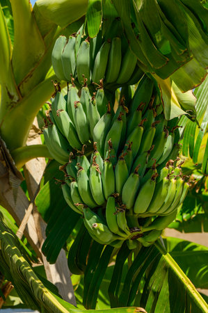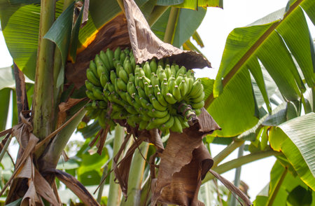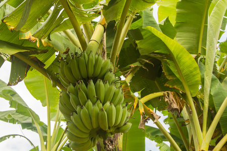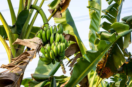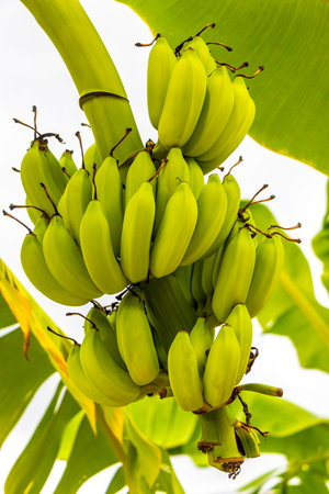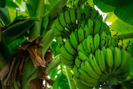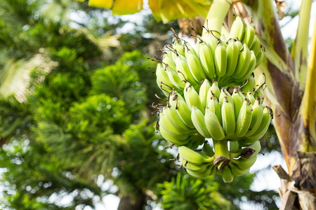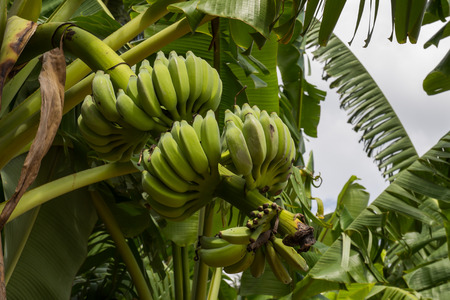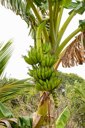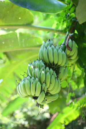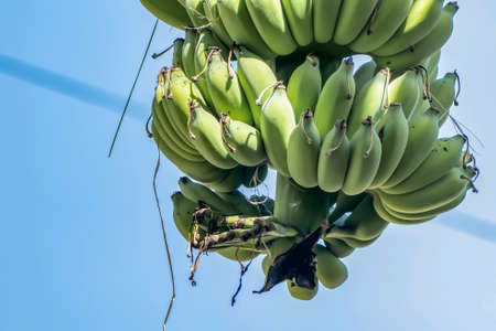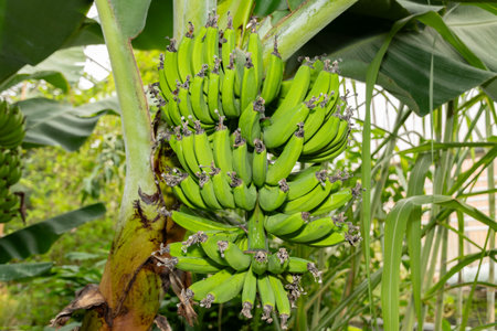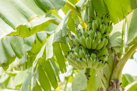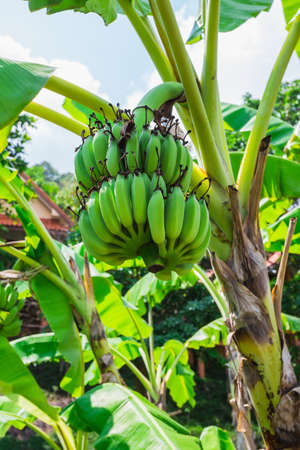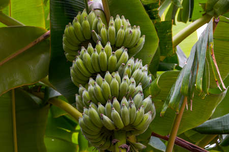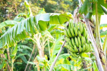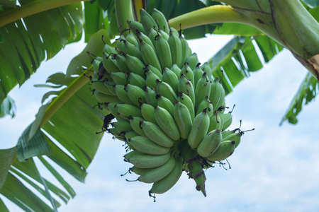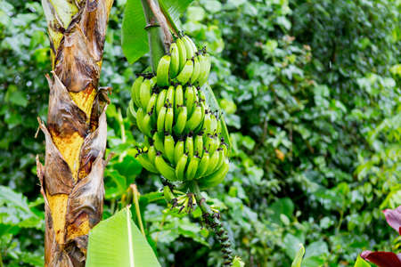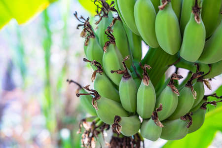Green Raw Banana Cultivated plant tree economic farm fruit from Asia.