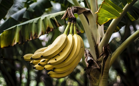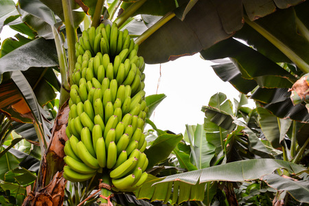 Bunch banana tropical fruit on tree