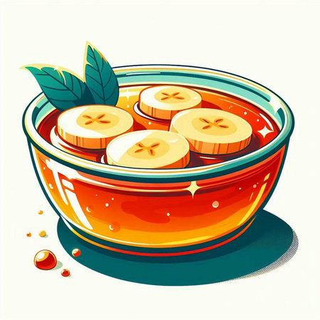 Banana juice in a glass bowl on a blue background. Vector illustration.