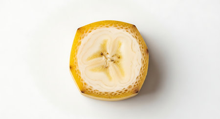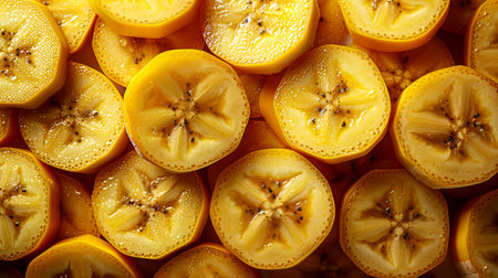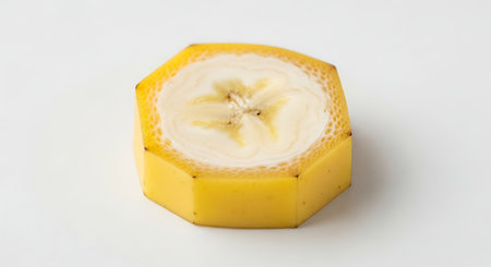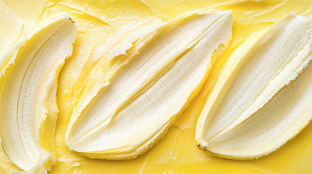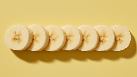 Close-up of fresh banana slices against a creamy yellow background, showcasing its vibrant color and natural texture, perfect for culinary designs.