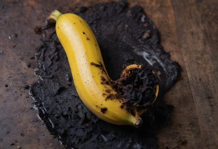 An eye-catching capture of a banana splashing in vibrant yellow, showcasing creativity and dynamic energy with dramatic lighting for stunning visual appeal.