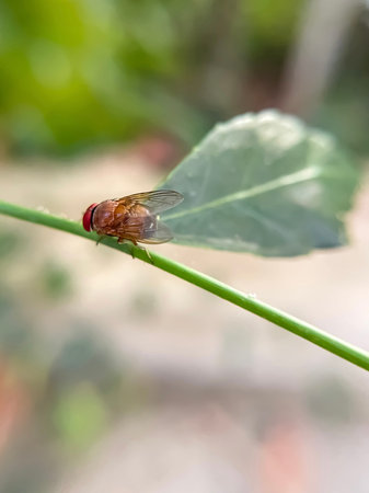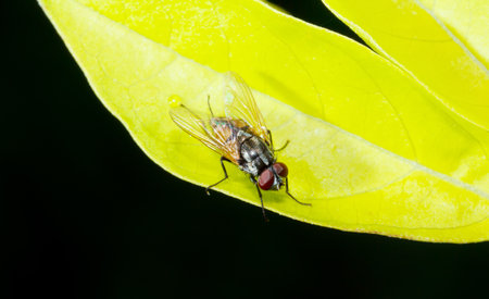 live house fly, Close-up Of Flies Mating Outdoors, macro shot House fly, Fly, House fly on leaf.