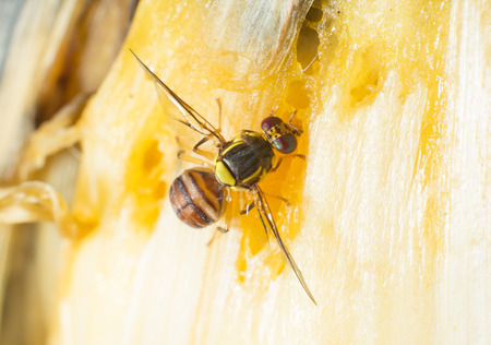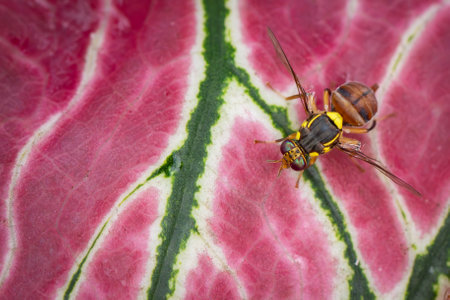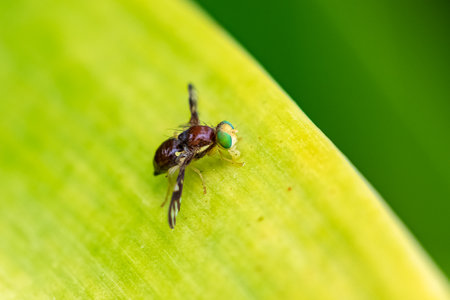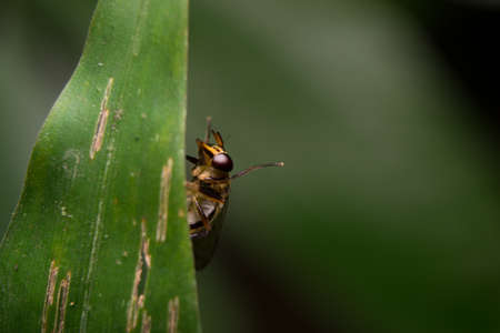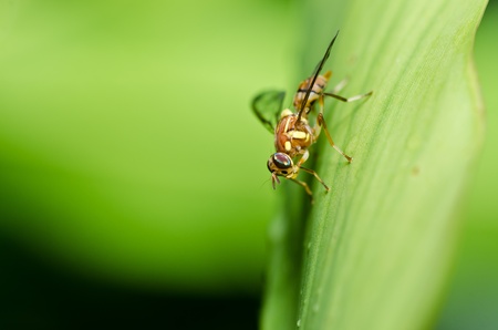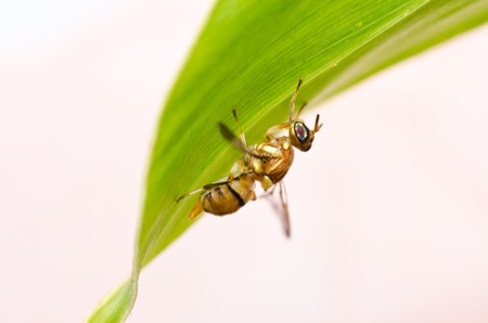 Oriental Fruit Fly - Bactrocera dorsalis on the green leaf