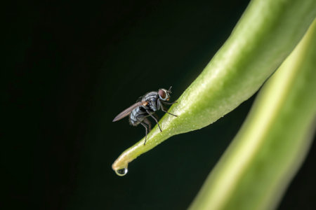 Macro Photography of Beautiful Fly on Green Leaf with Space for Text