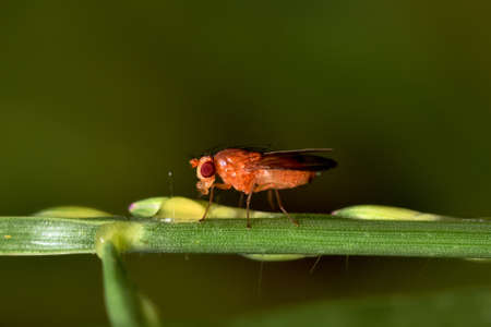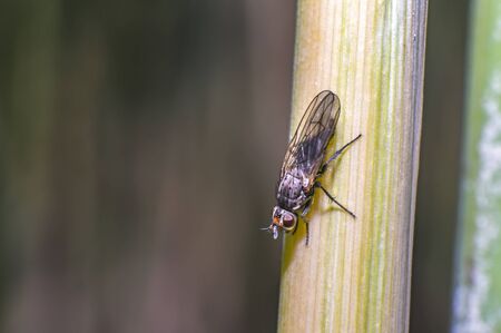 Celery fly, Euleia heraclei, colorful fly on a leaf, macro
