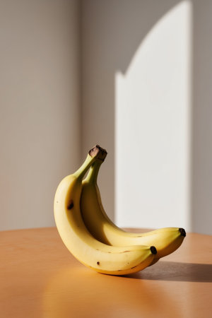 AI Generated. Fresh Banana on Wooden Surface with Shadow Play