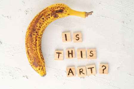 Art installation banana taped to a black wall