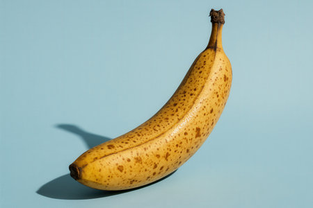 Ripe Speckled Banana On Blue Minimal Background