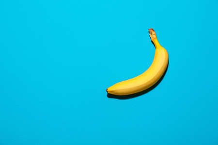 Banana on blue background. Ripe fruit. One banana on a turquoise background.