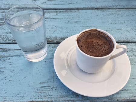Turkish tea served in tulip-shaped glass on a small saucer blurred nature background. Summer holiday background.